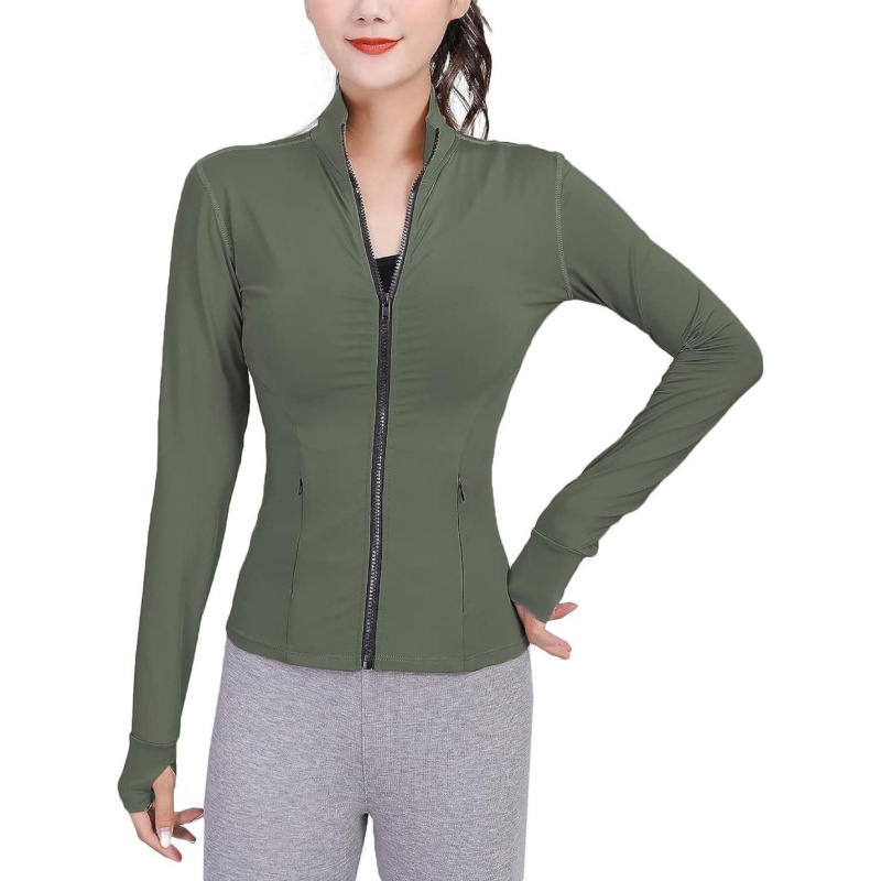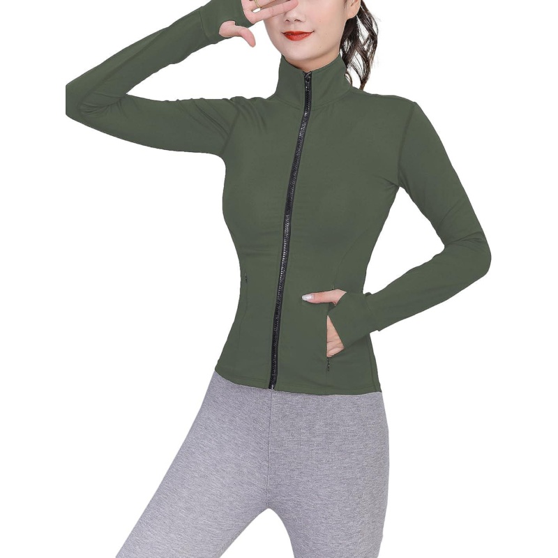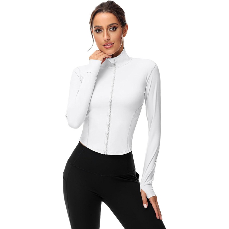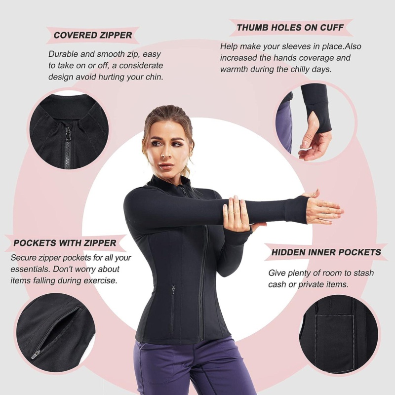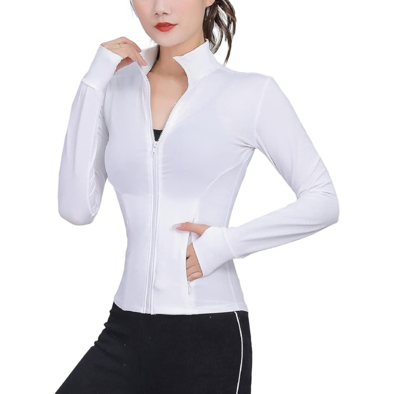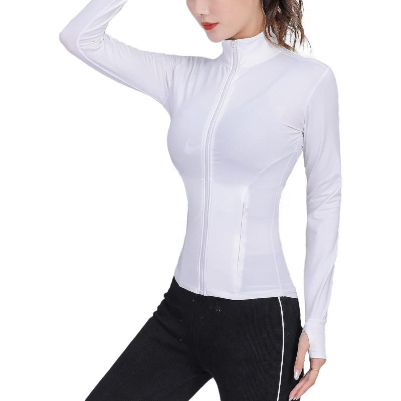 TrainingGirl Womens Sports Jacket Full Zip Workout Running Jacket Slim Fit Long Sleeve Yoga Track Jacket with Thumb Holes